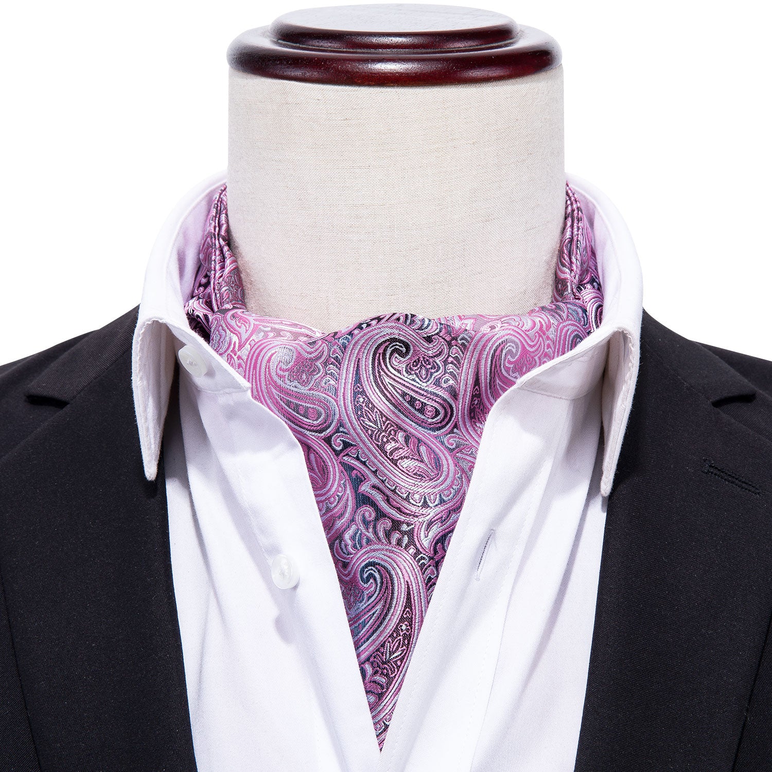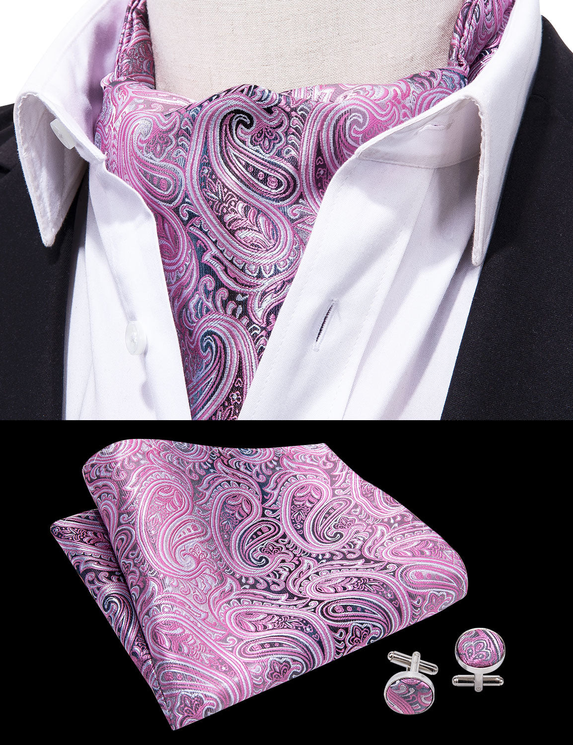 Victorian Ascot Silky Floral Day Cravat Set [Violet Paisley]