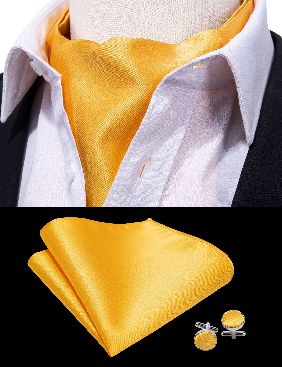 Victorian Ascot Silky Plain Satin Day Cravat Set [Yolk Yellow]