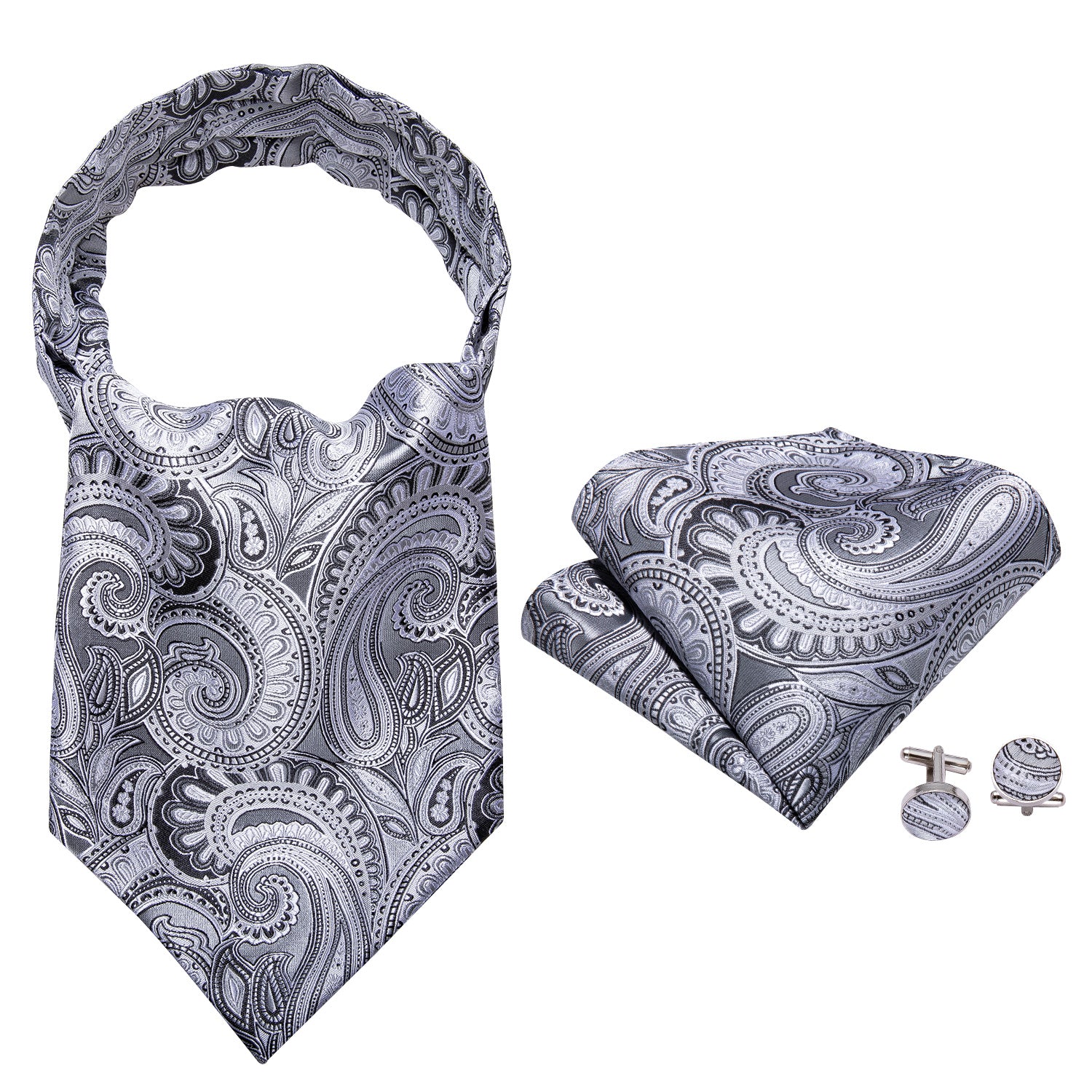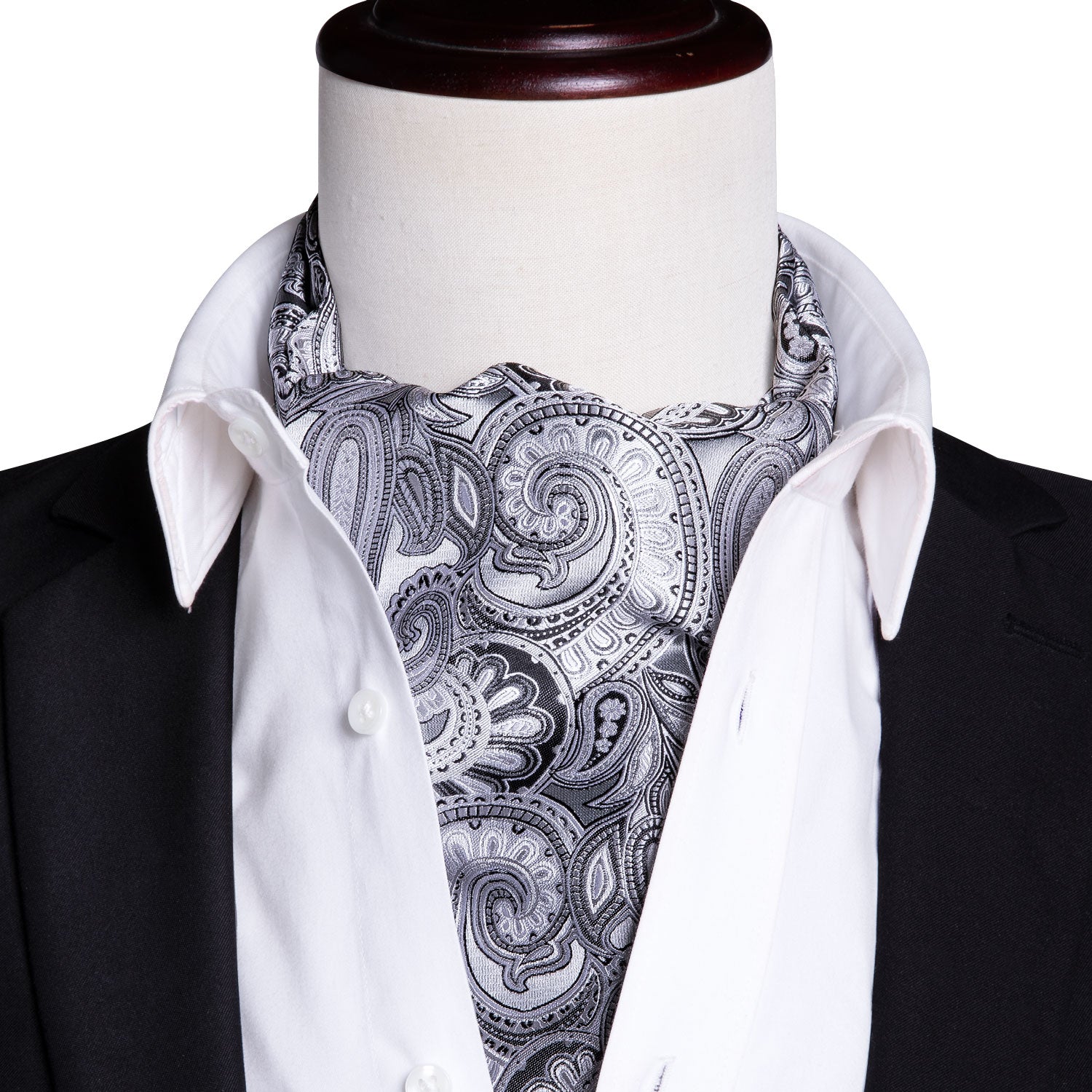 Victorian Ascot Silky Floral Day Cravat Set [Steel P-Damask]