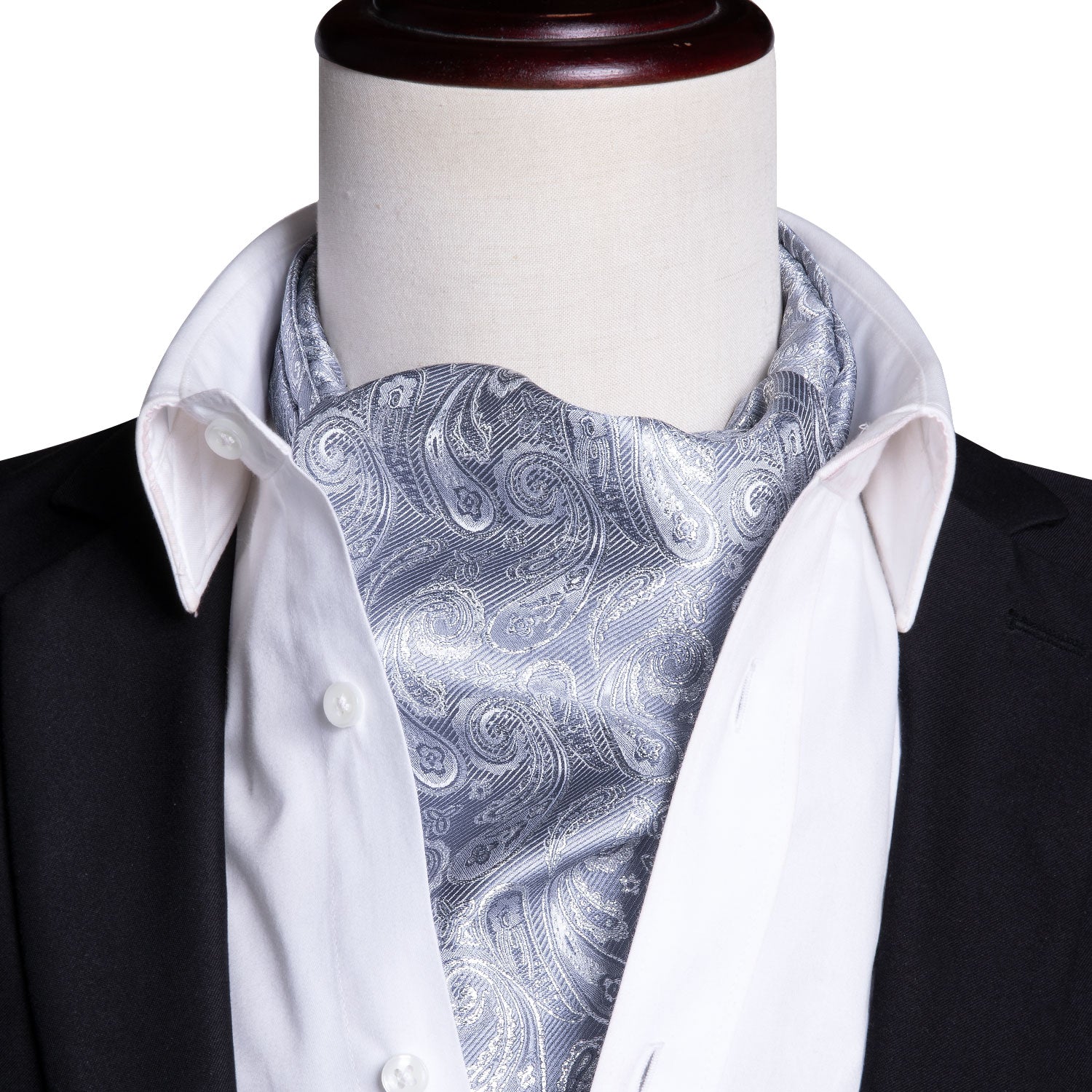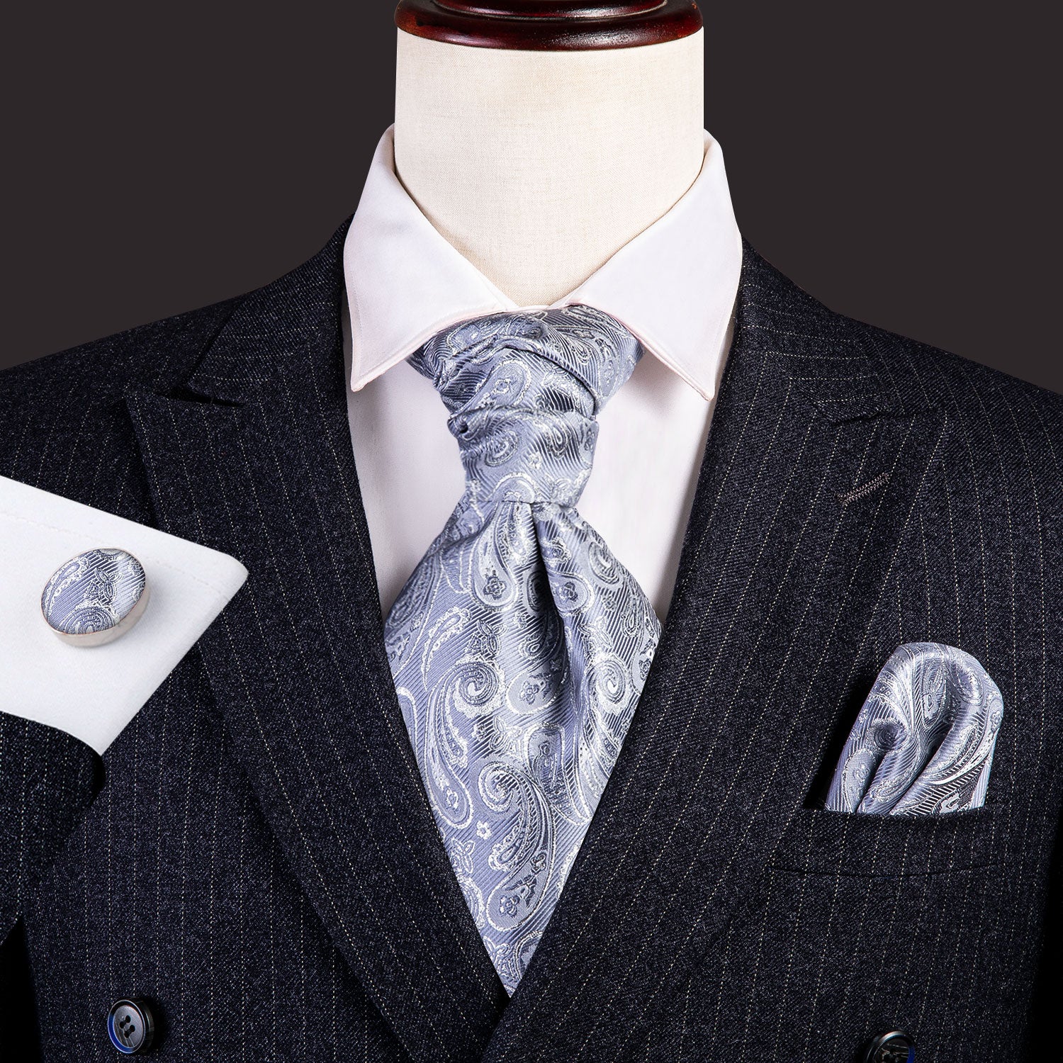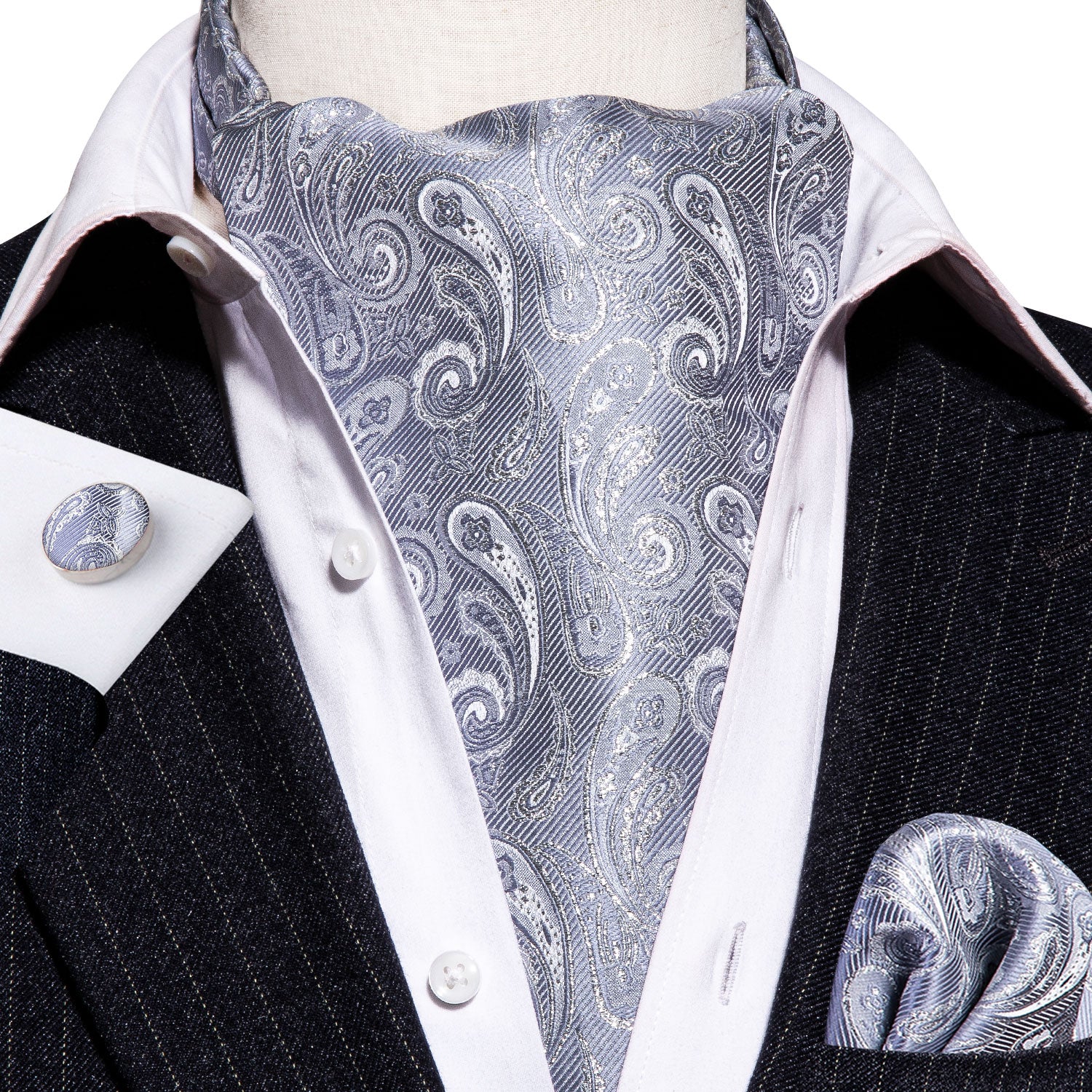 Victorian Ascot Silky Floral Day Cravat Set [Grey Paisley]