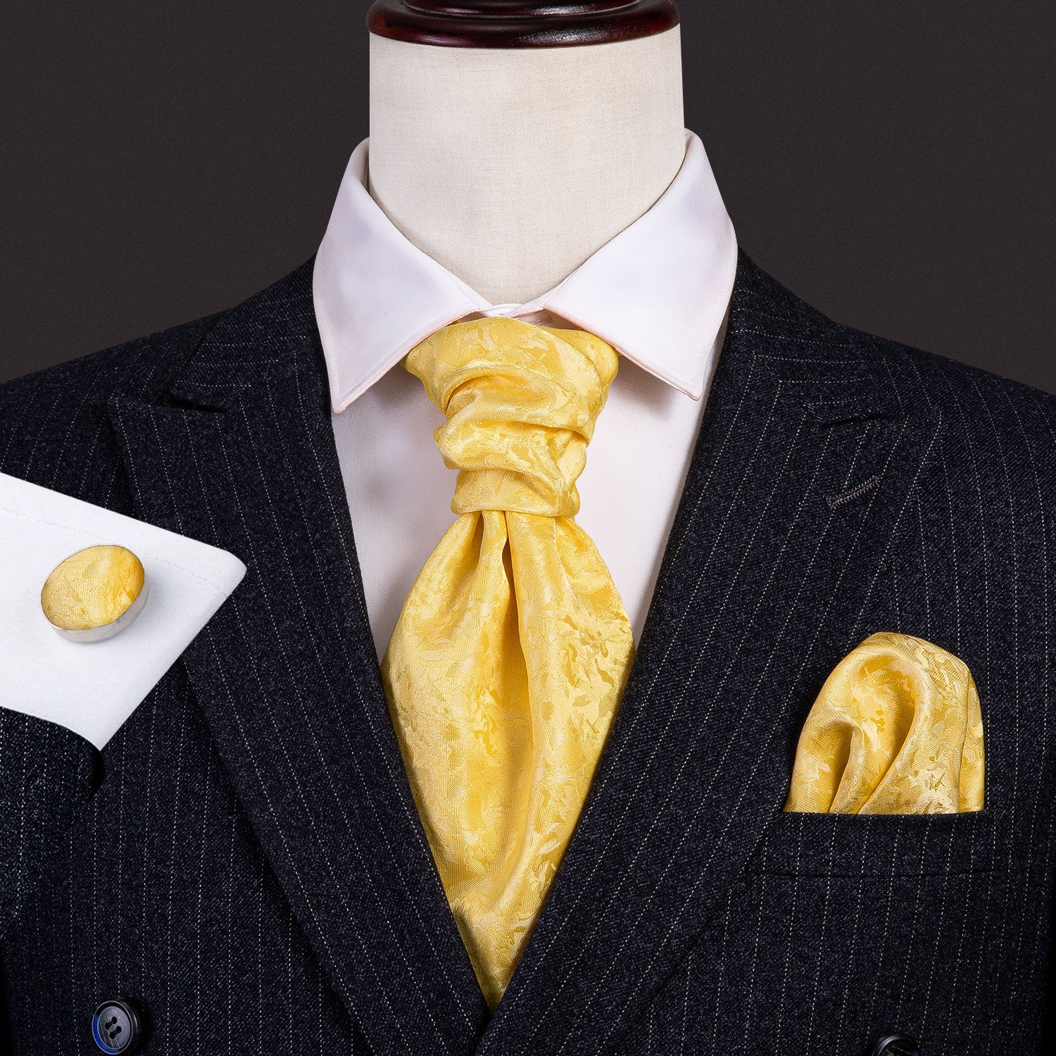 Victorian Ascot Silky Floral Day Cravat Set [Golden Leaves]