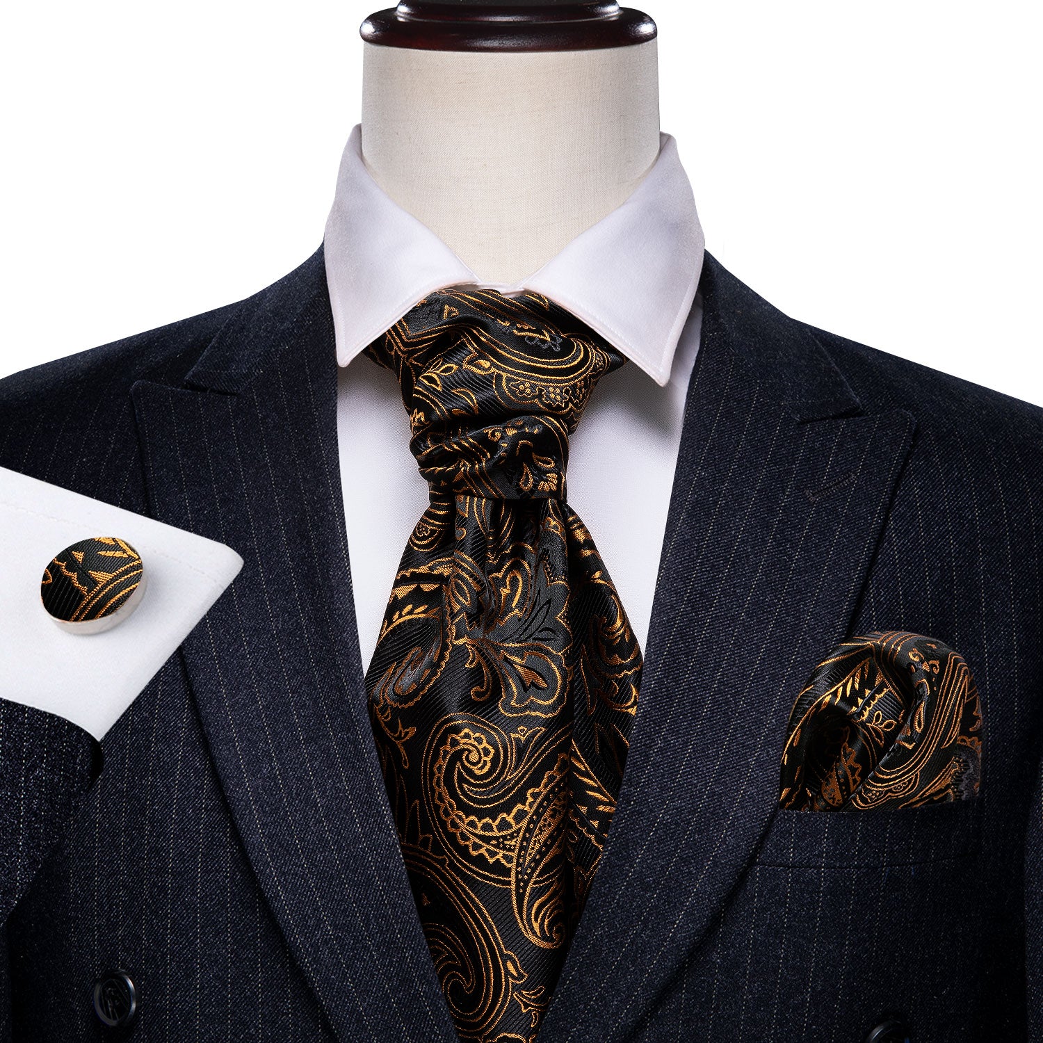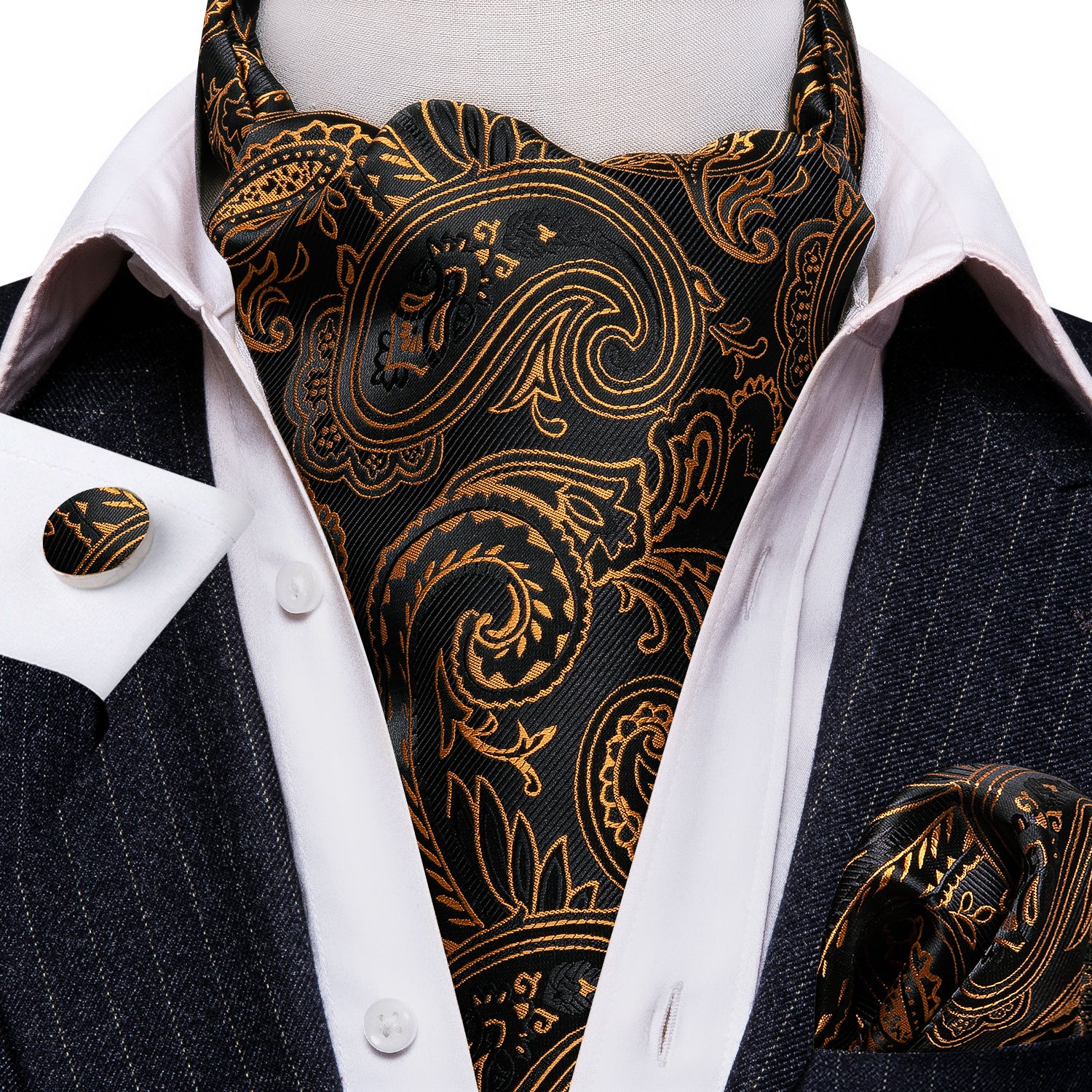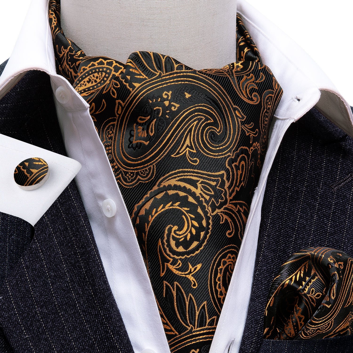 Victorian Ascot Silky Floral Day Cravat Set [Black P-Damask]