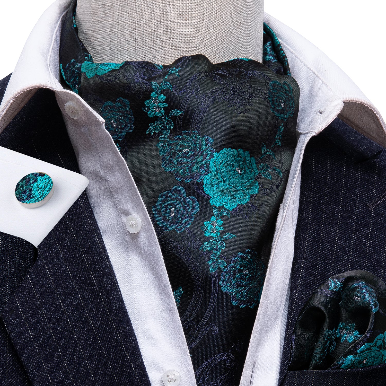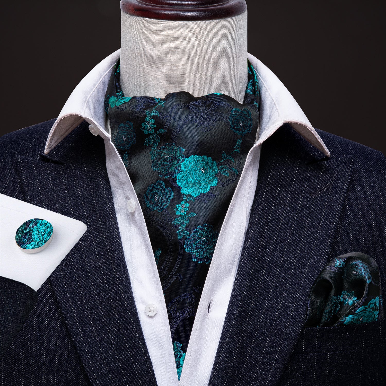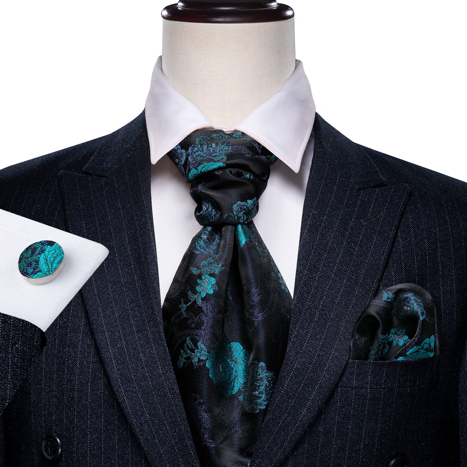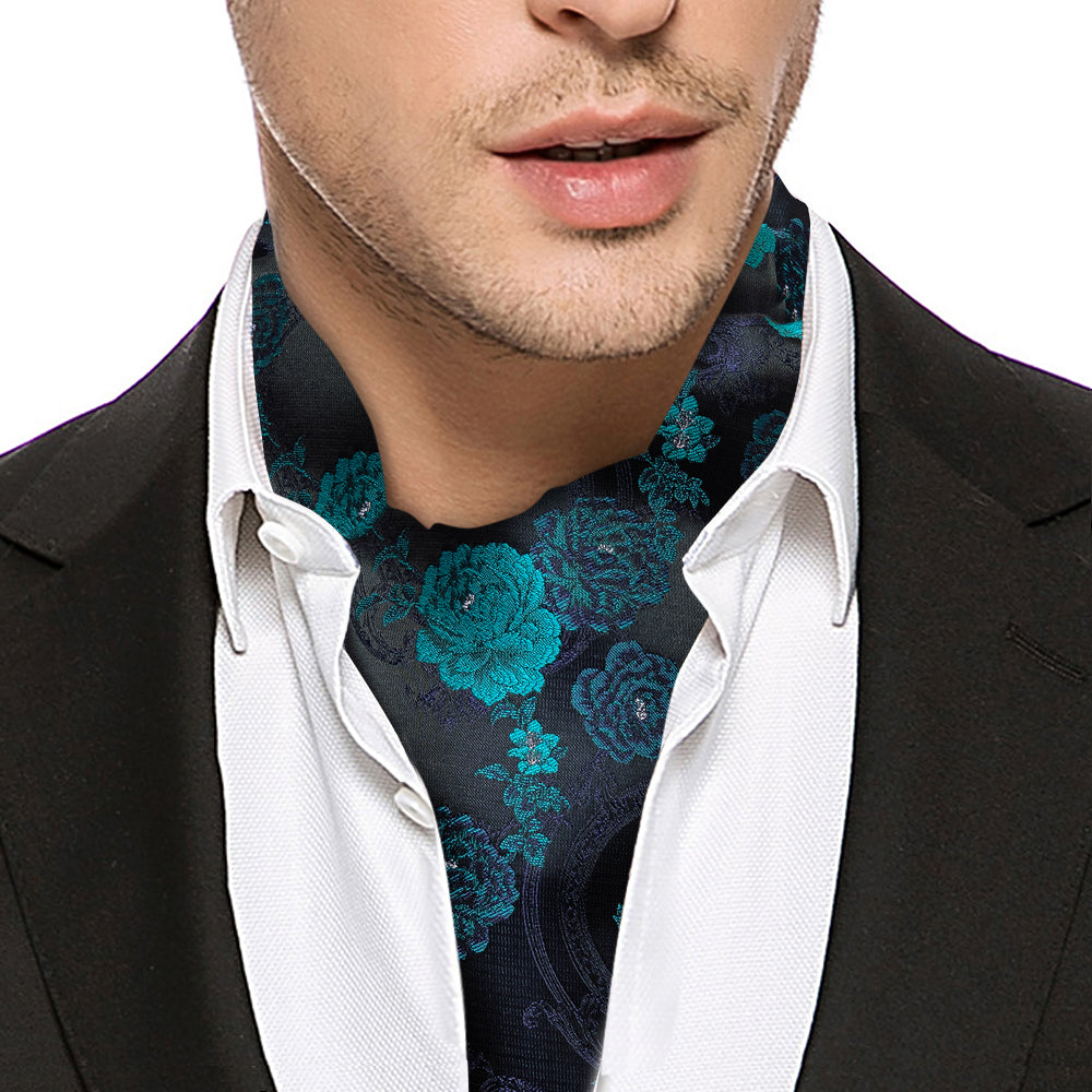 Victorian Ascot Silky Floral Day Cravat Set [Mint Night]