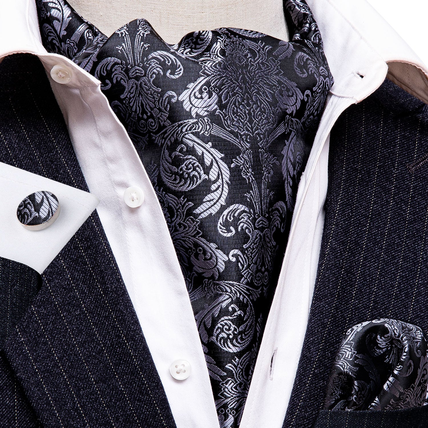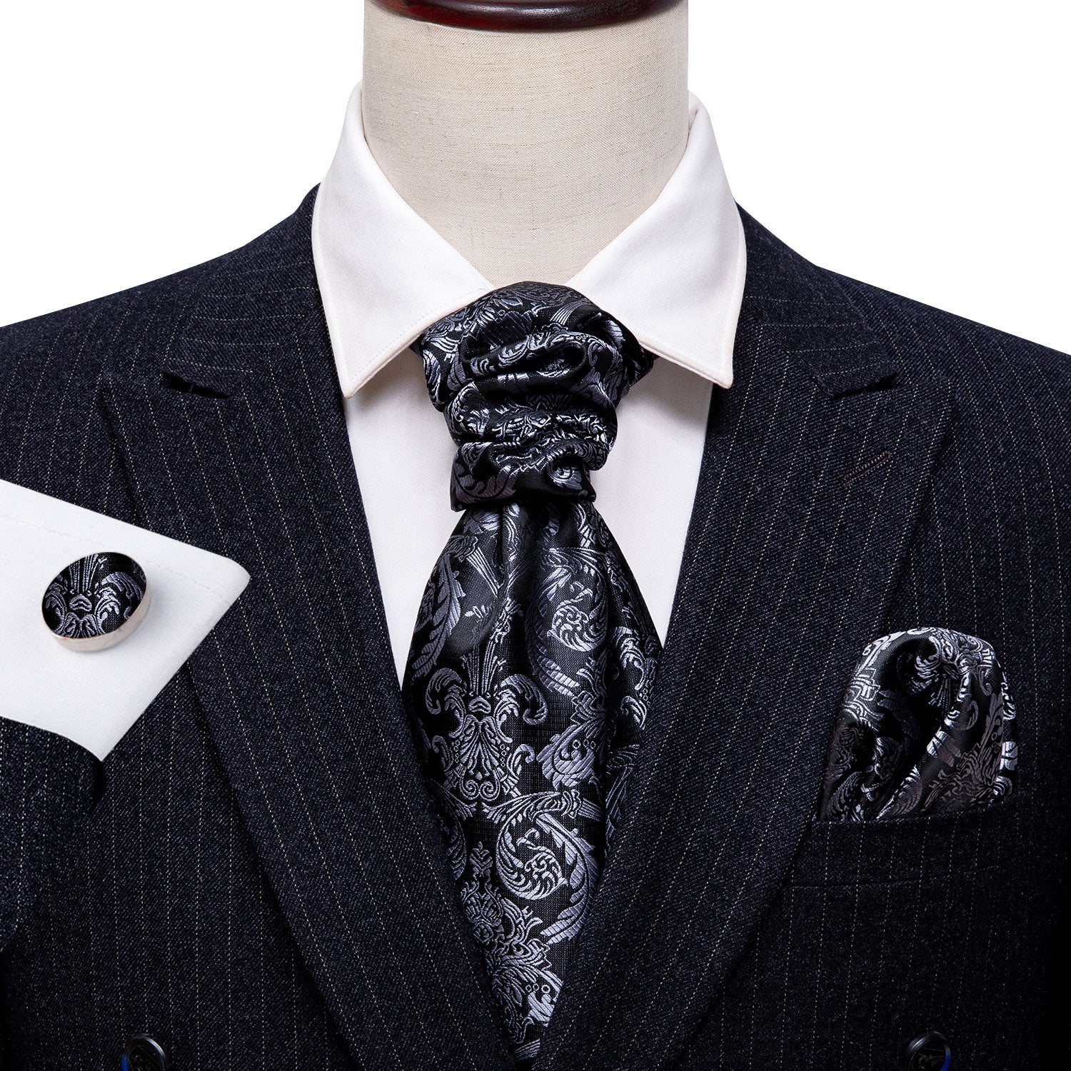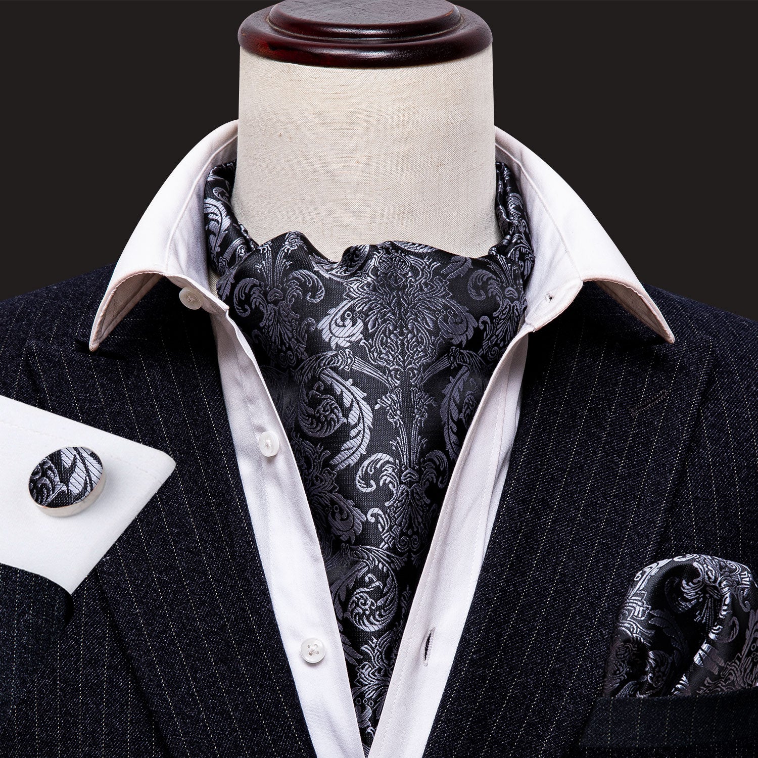 Victorian Ascot Silky Floral Day Cravat Set [Palace Steel]