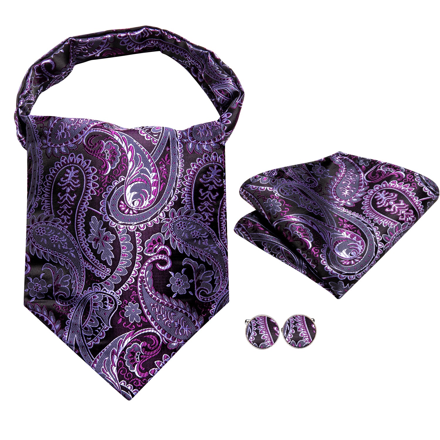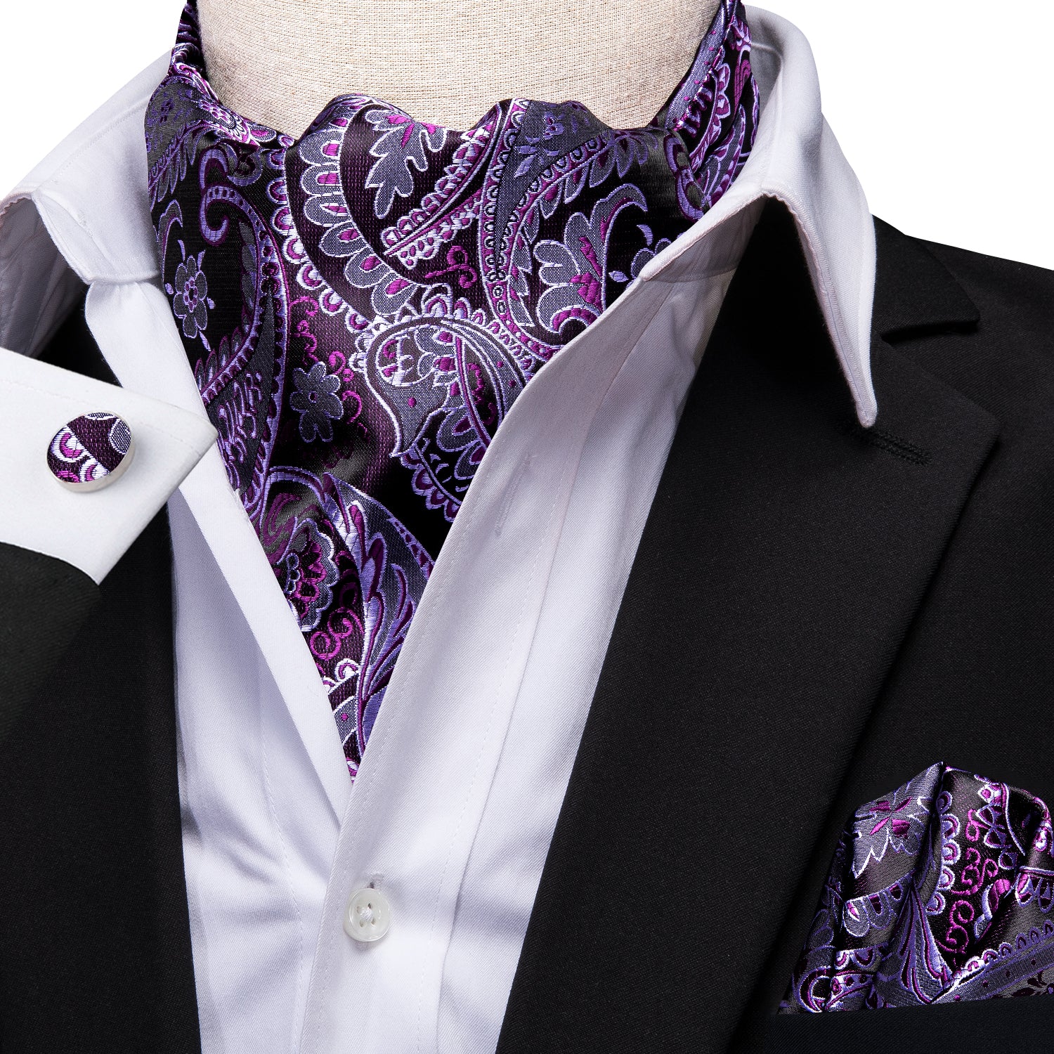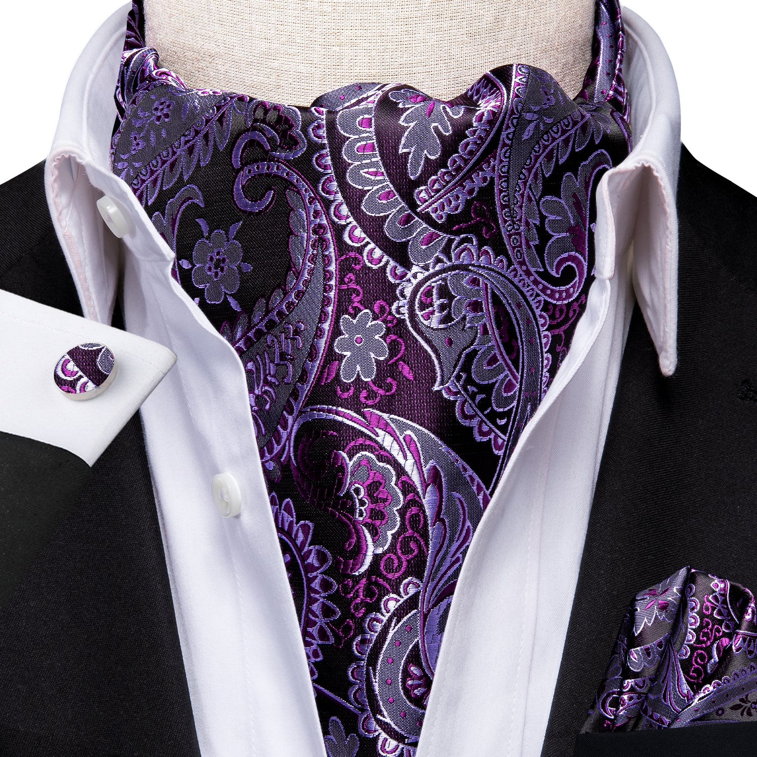 Victorian Ascot Silky Floral Day Cravat Set [Paisley Purple]