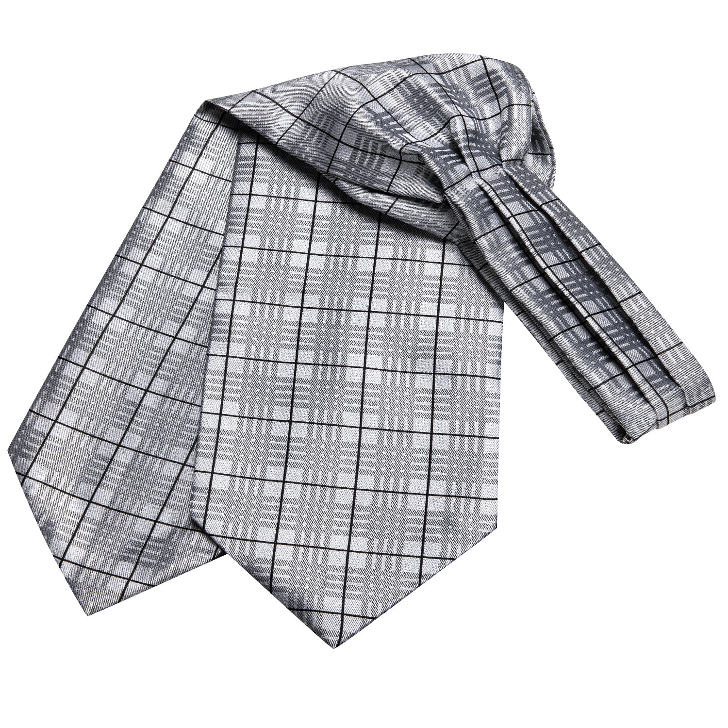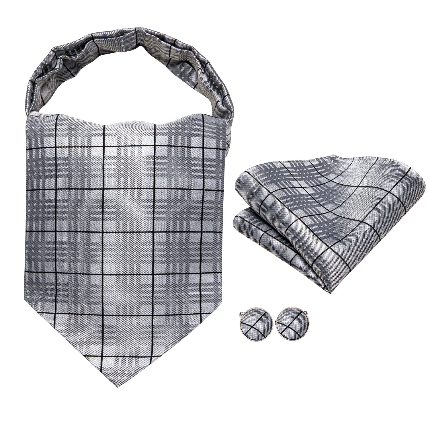 Victorian Ascot Silky Floral Day Cravat Set [Grey Plaid]