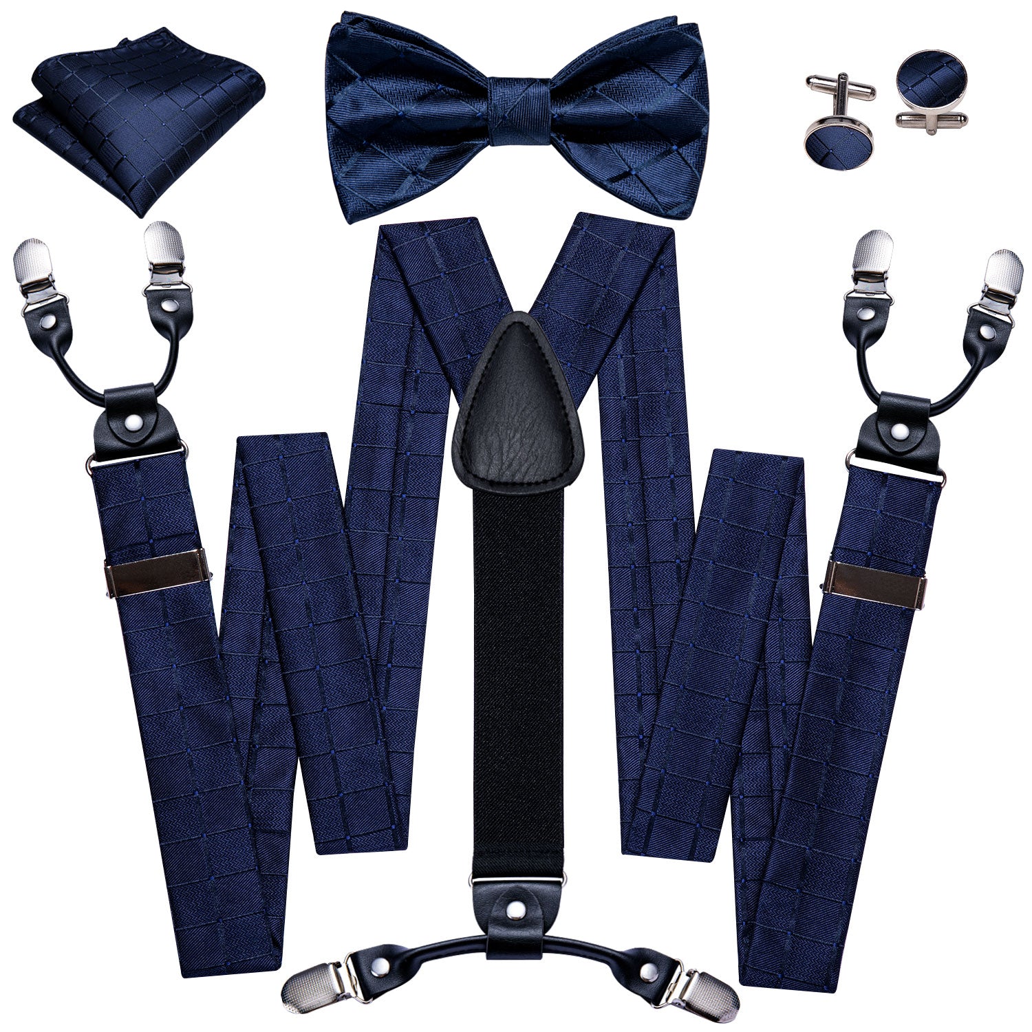 BD2008 Men's Braces Designer Clip Suspender Set [Blue Cubes]