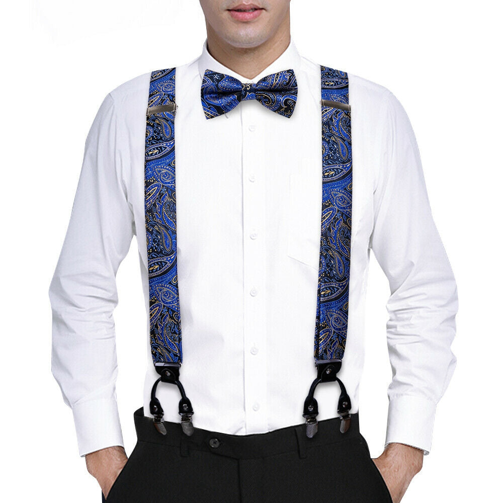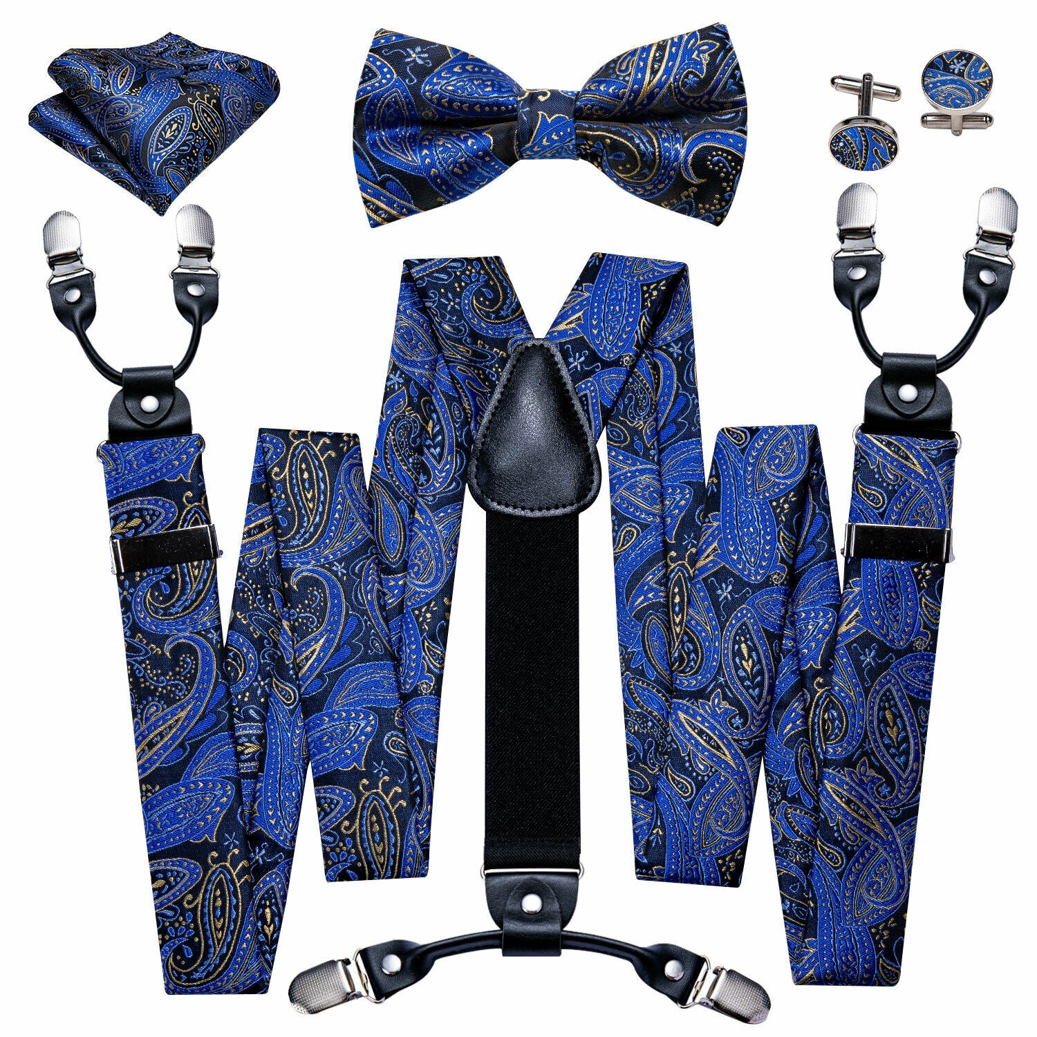 BD2014 Men's Braces Designer Clip Suspender Set [Blue n Gold]