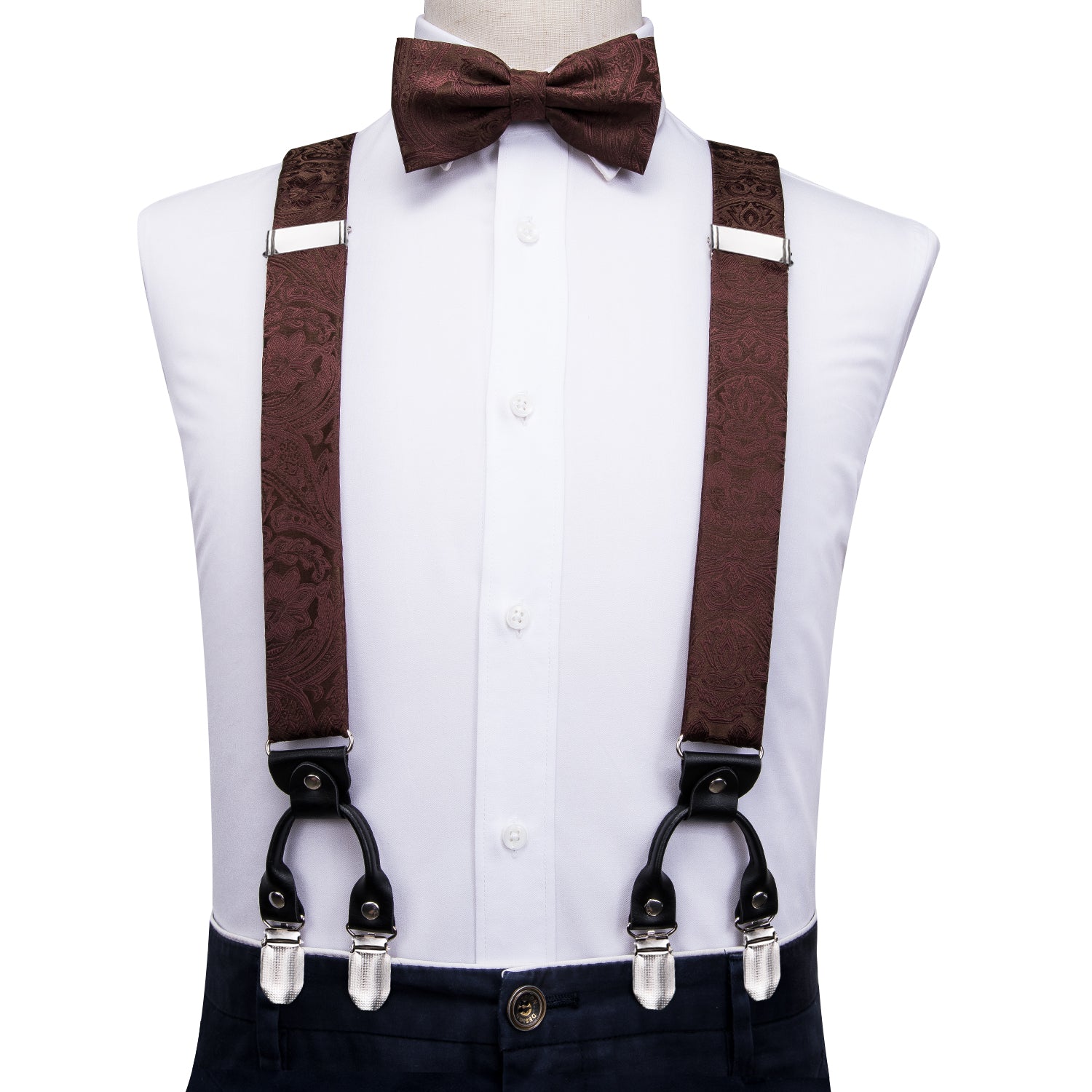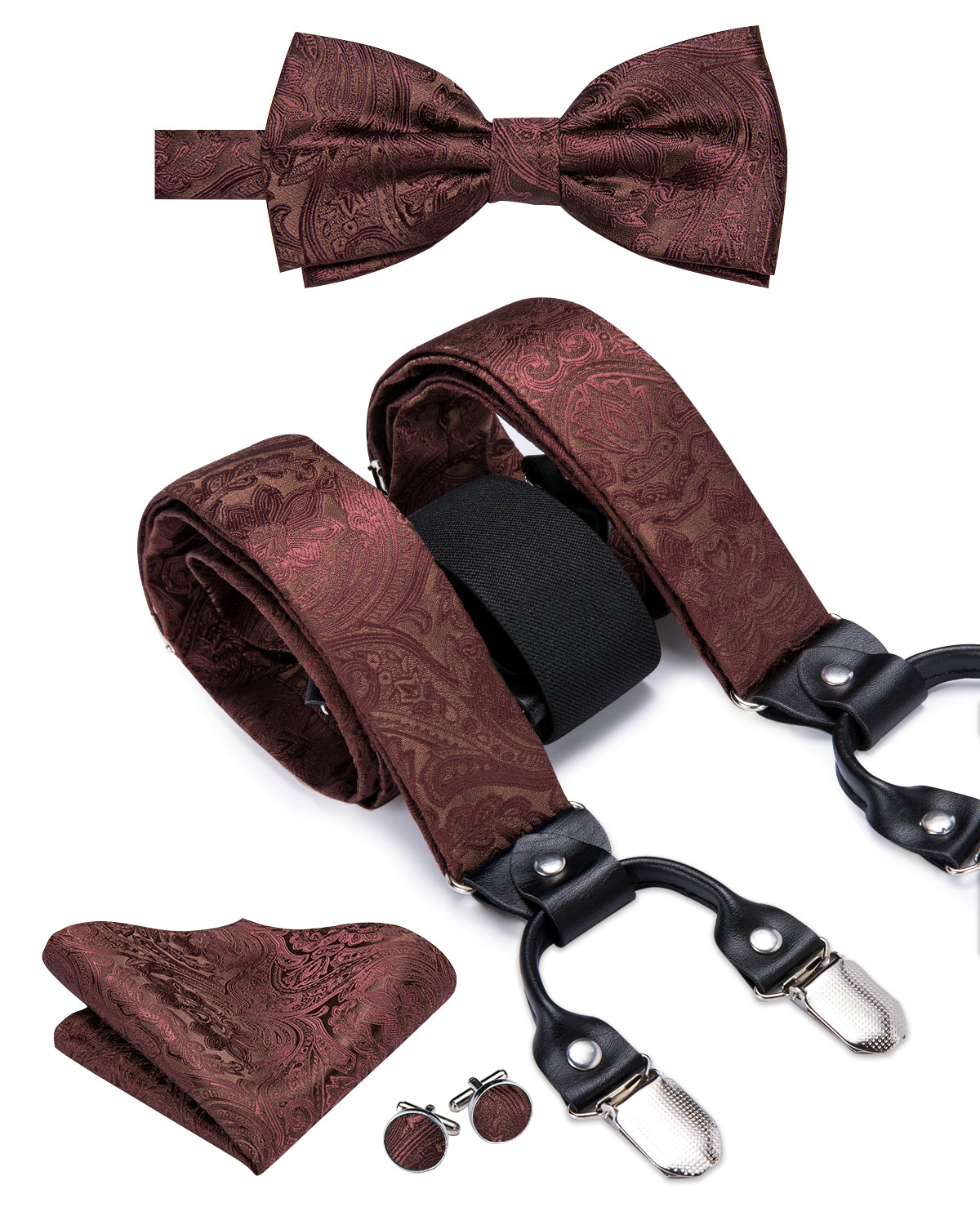 BD3030 Men's Braces Designer Clip Suspender Set [Wine Brown]