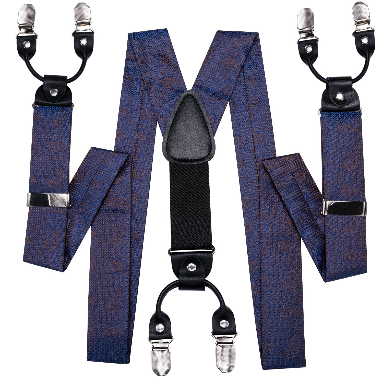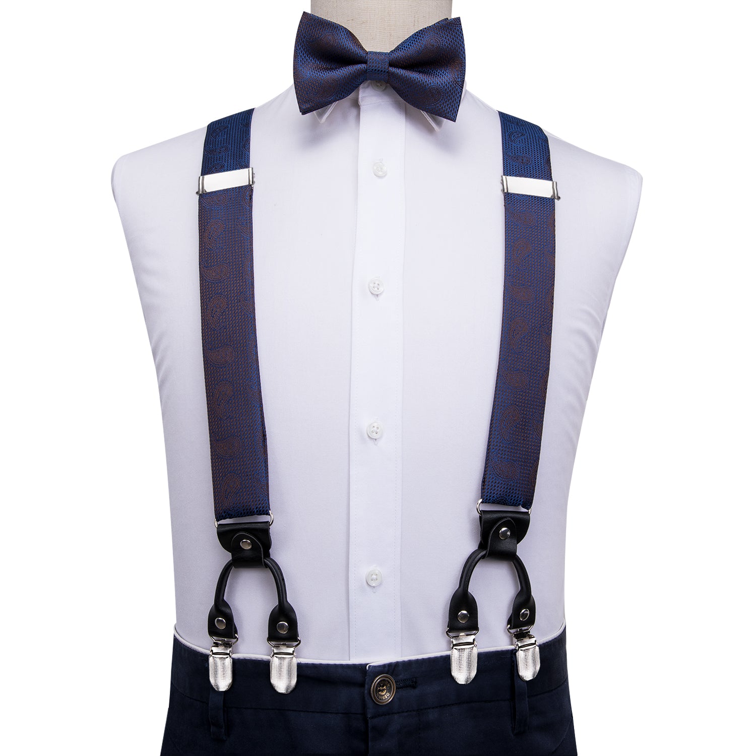 BD3034 Men's Braces Designer Clip Suspender Set [Navy Paisley]