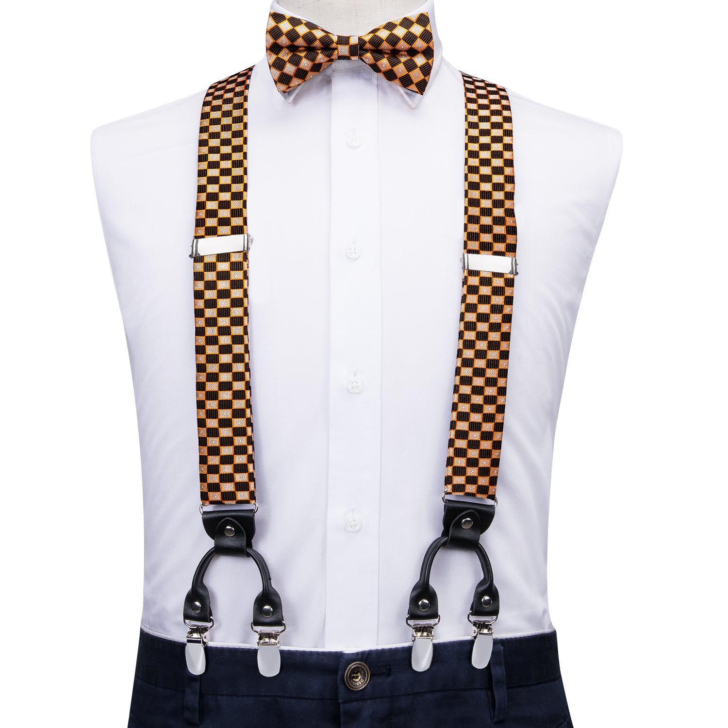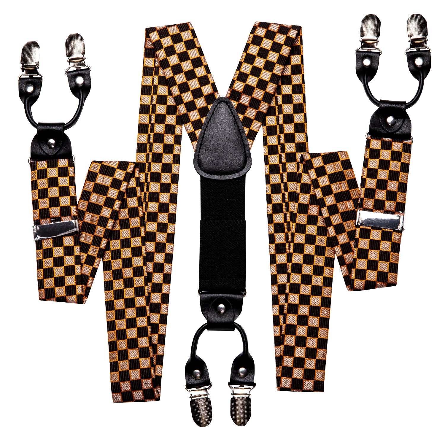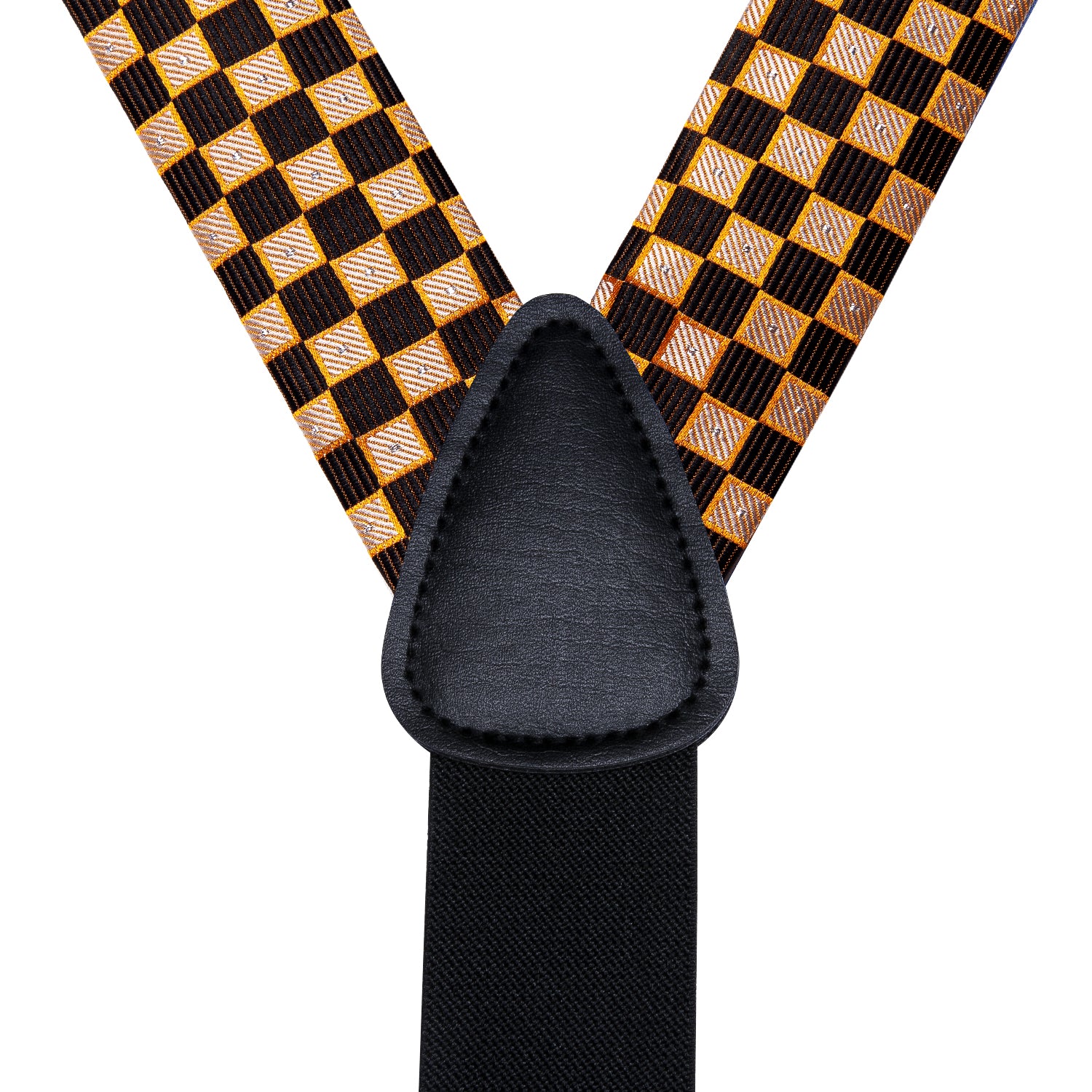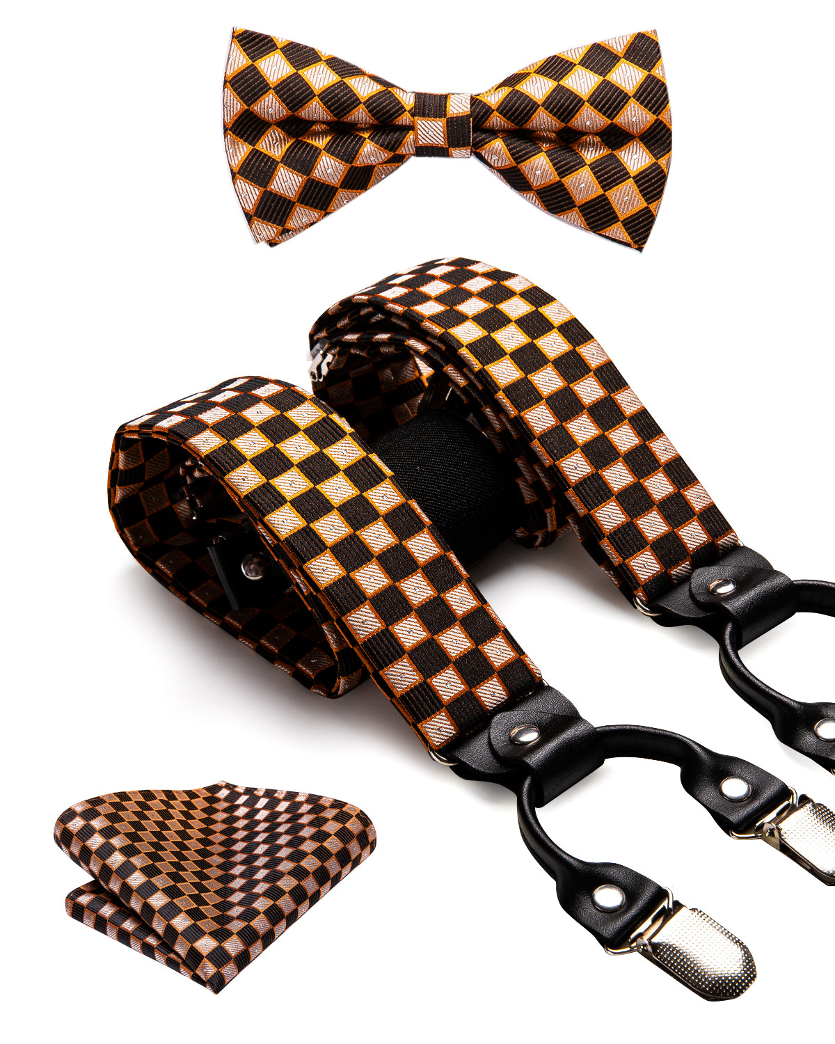 BD3049 Men's Braces Designer Clip Suspender Set [Cheque Brown]