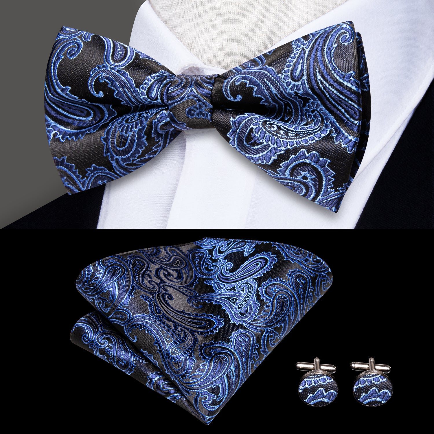 Well finished with Silky microfabric in bright Floral designs offering a festive look, companied by Bowtie and Pocket Square of the same print, and don't forget the cufflinks for your French Shirt,