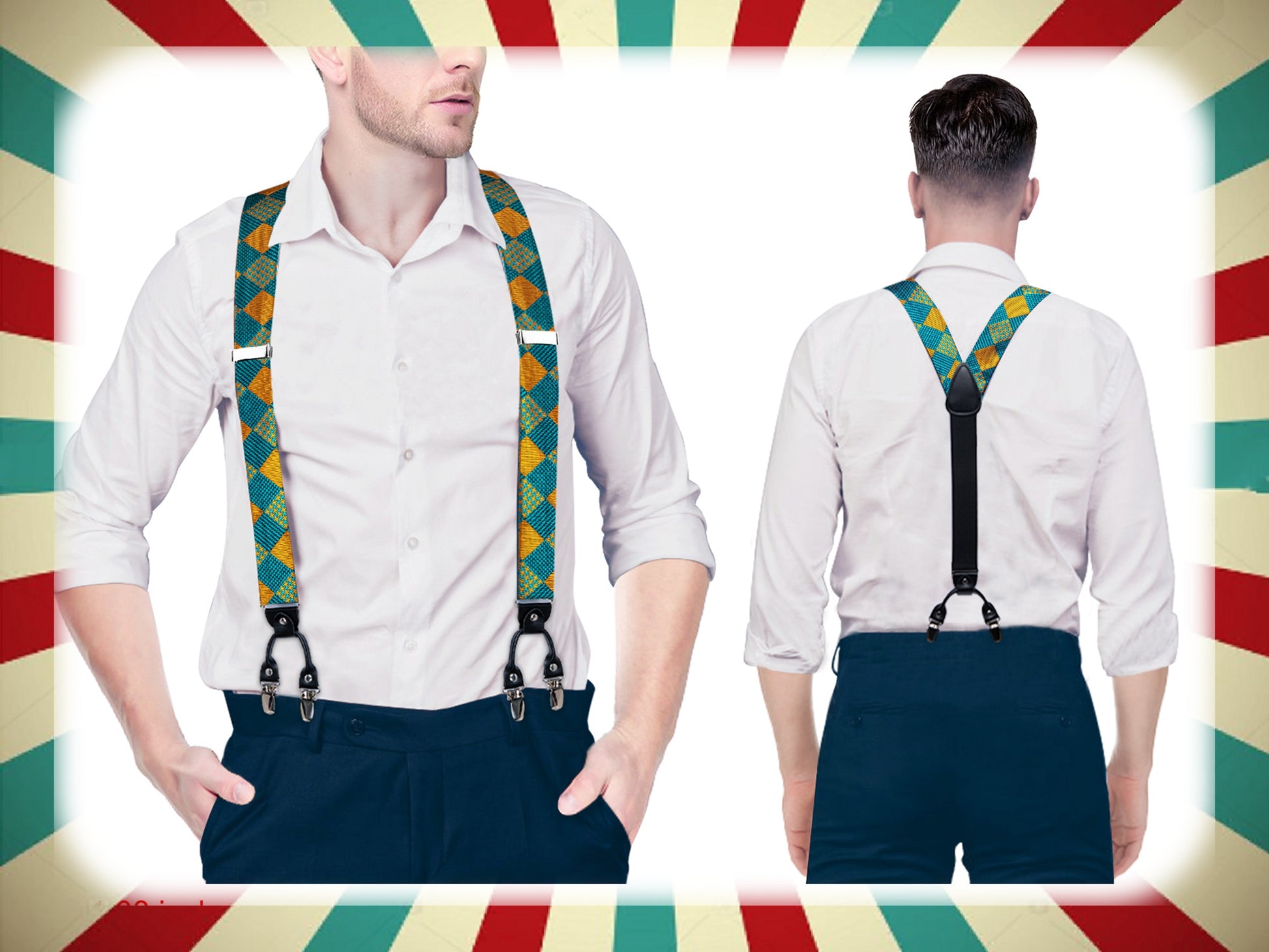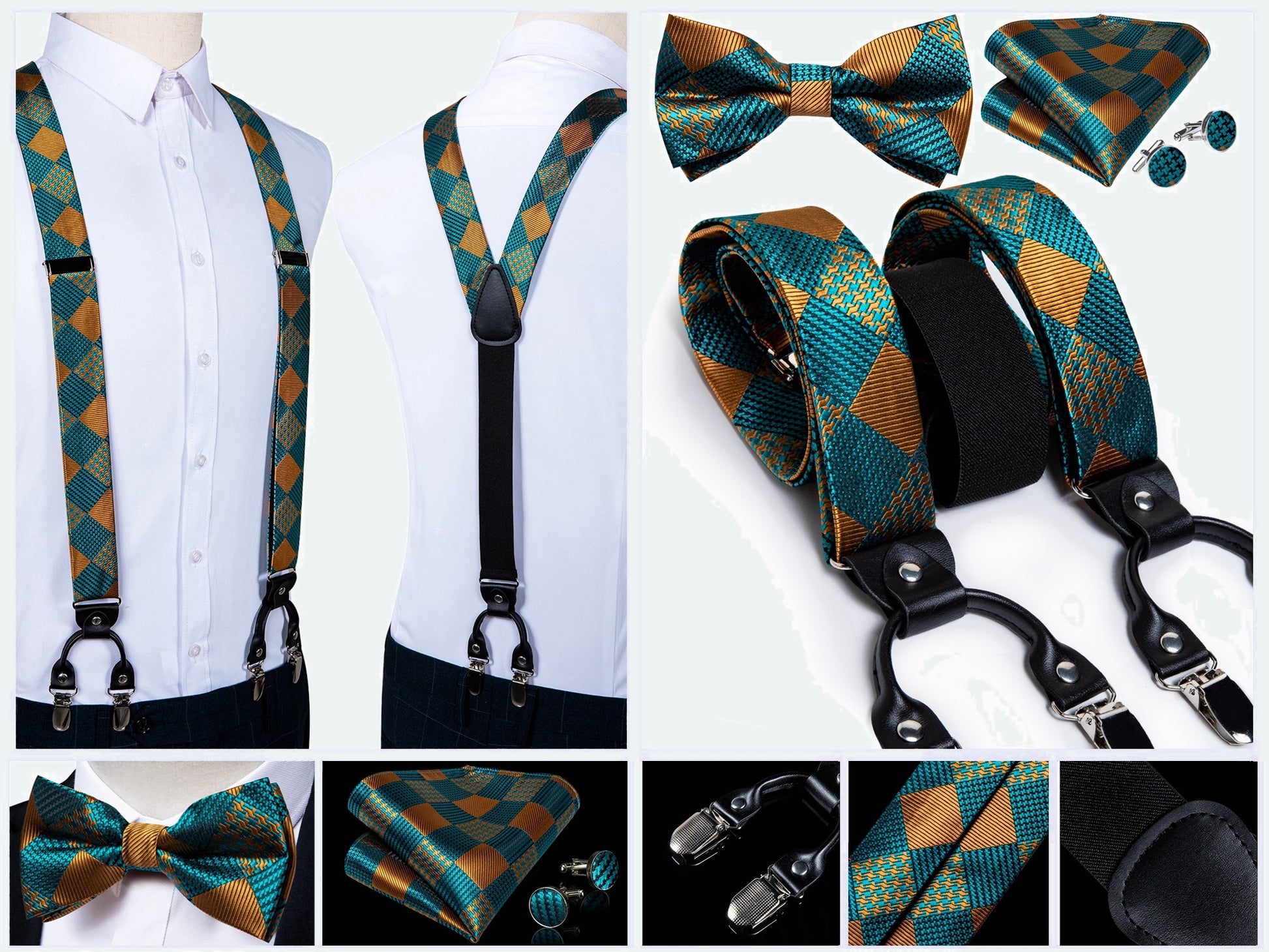 BD4005 Men's Braces Designer Clip Suspender Set [Teal Patch]
