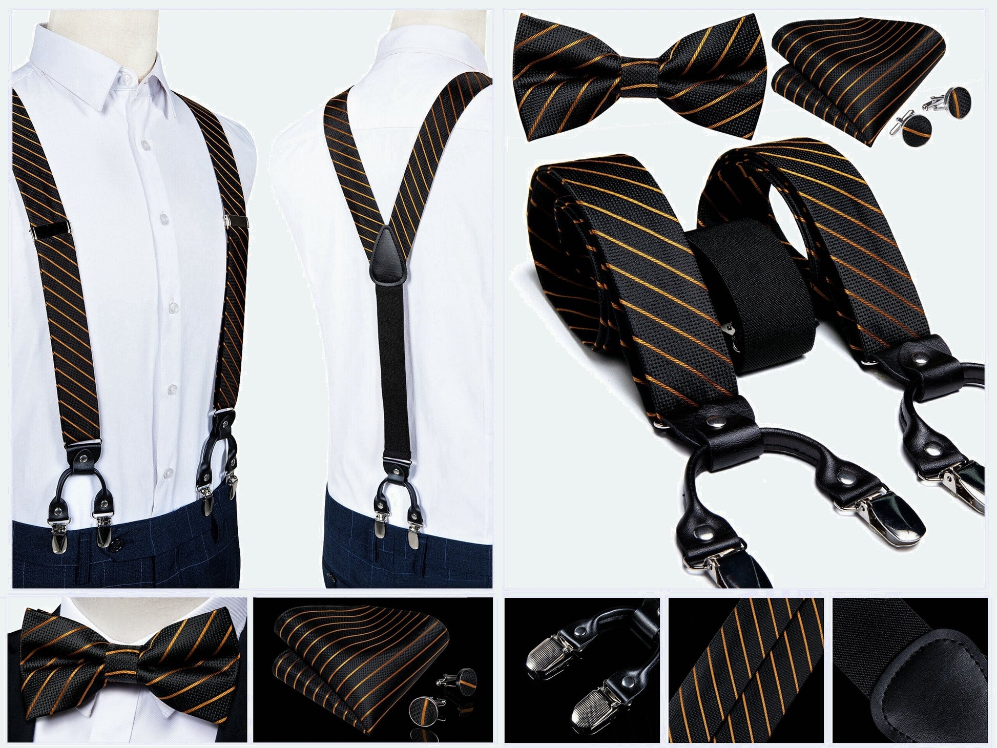 BD4006 Men's Braces Designer Clip Suspender Set [Golden Seam]