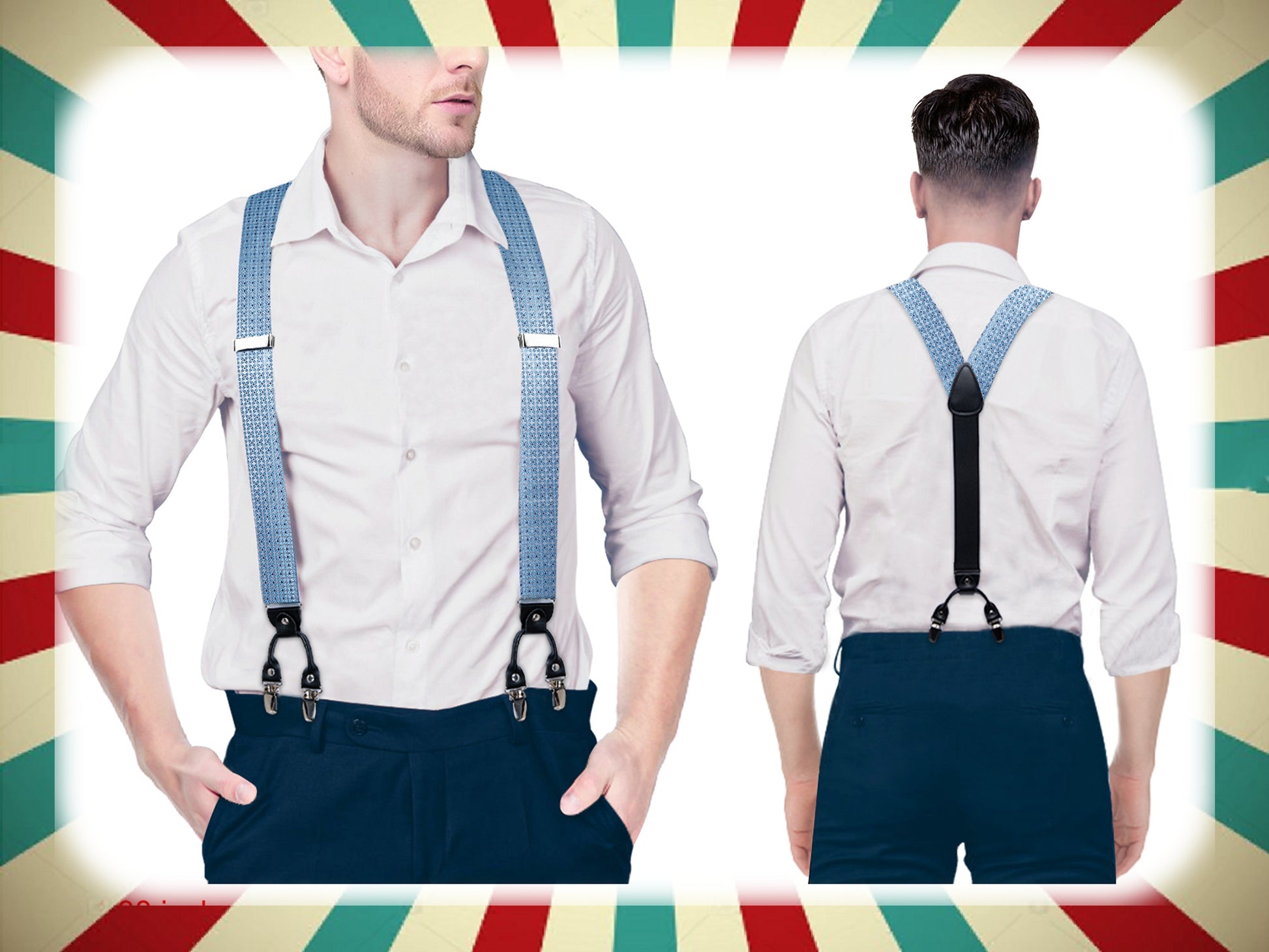 Typical Y Shape design joint by faux leather pieces with 6 clips of metallic shell & rubber teeth that hold your trousers all day long, easy to wear with adjustable braces to fit all body specs,