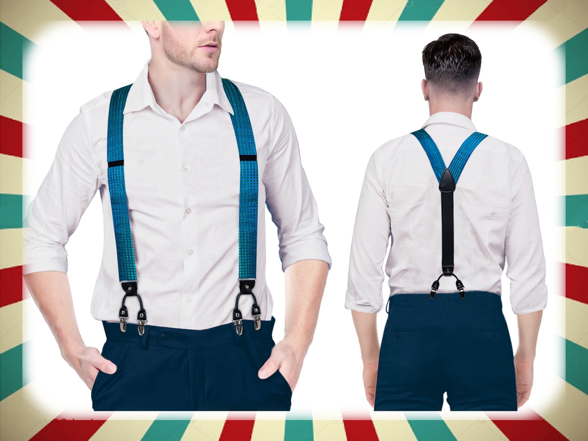 BD4019 Men's Braces Designer Clip Suspender Set [Teal Pool]