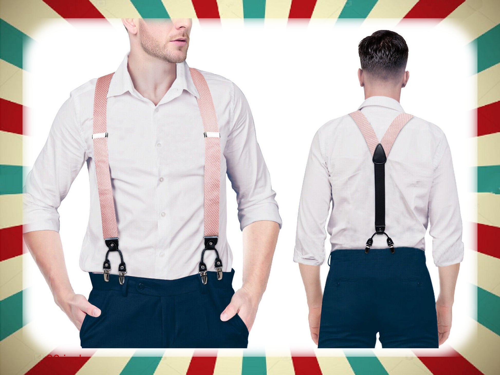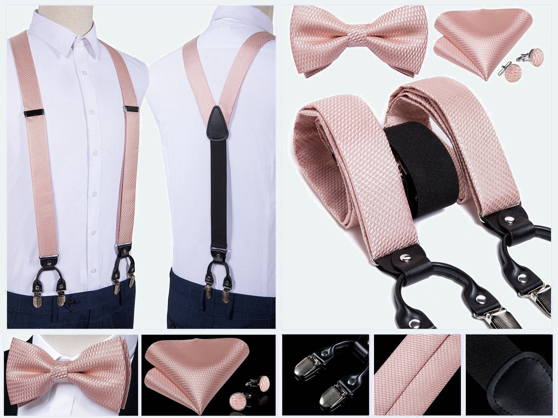 BD4022 Men's Braces Designer Clip Suspender Set [Pink Nylon]